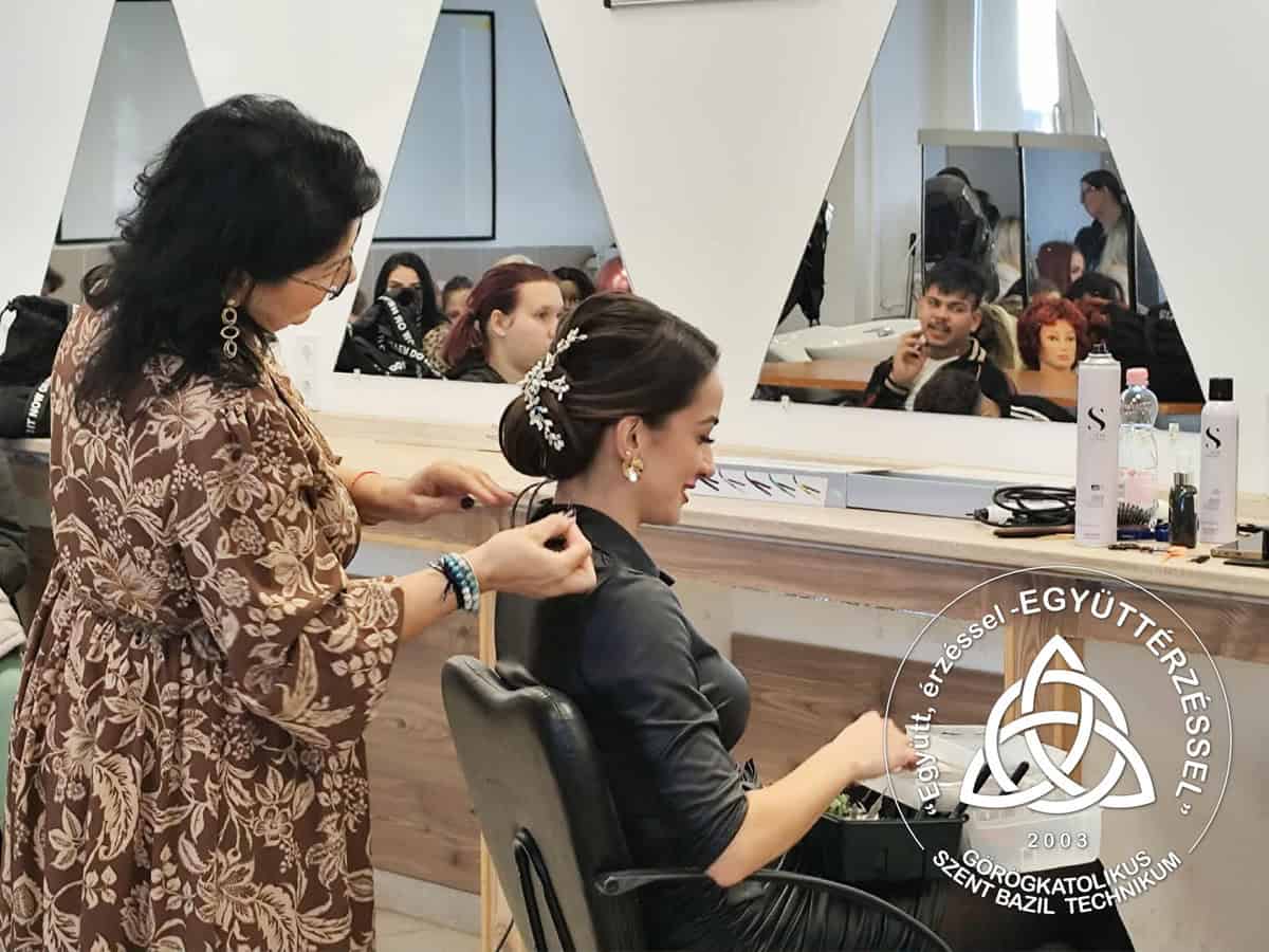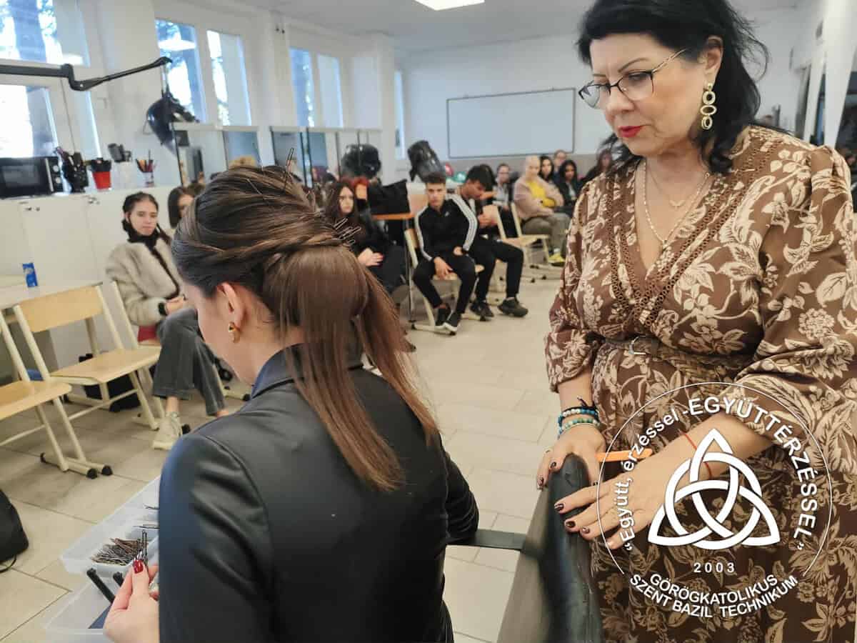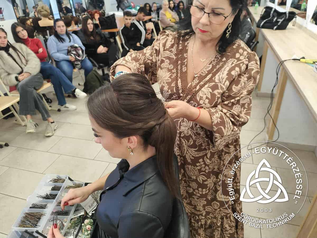 A szépészet ágazat tanulói két különleges bemutatón is részt vehettek: 💆♀️ Hegedűs-Molnár Zsuzsa oktatónk a Bemer-terápia jótékony hatásairól tartott előadást, 💇♀️ míg Károly Irma lenyűgöző kontybemutatóval varázsolta el a közönséget.