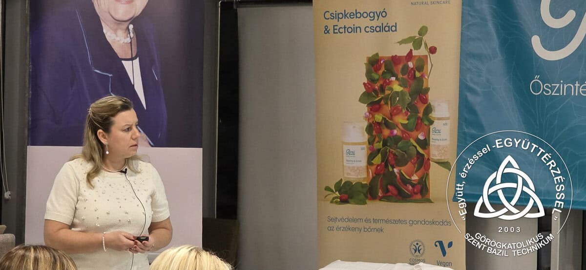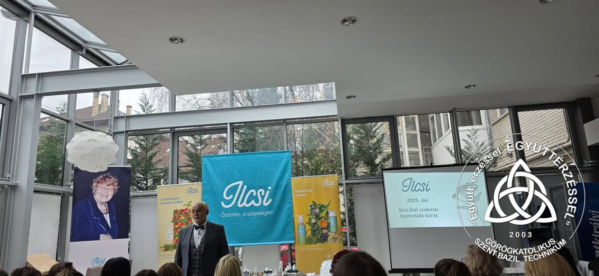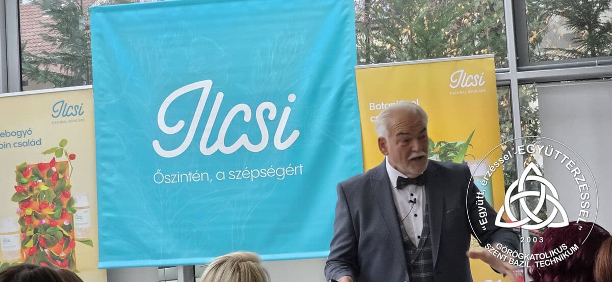 A napot Molnár Ferenc, az Ilcsi tulajdonosa nyitotta meg. Őszinte, szókimondó előadásában a cég értékeiről, felelősségteljes márkaépítésről és a hiteles szakmai tudás fontosságáról beszélt. Kiemelte: az interneten terjedő “gyors tippek” és veszélyes csodatanácsok helyett a valódi, szakmailag megalapozott tudásra kell építeni – különösen azoknak, akik a szépségiparban szeretnének dolgozni. Ez az üzenet különösen fontos a Szent Bazil Technikum tanulóinak, hiszen a kozmetikus képzés egyik alappillére éppen a felelősségteljes, szakértői hozzáállás.