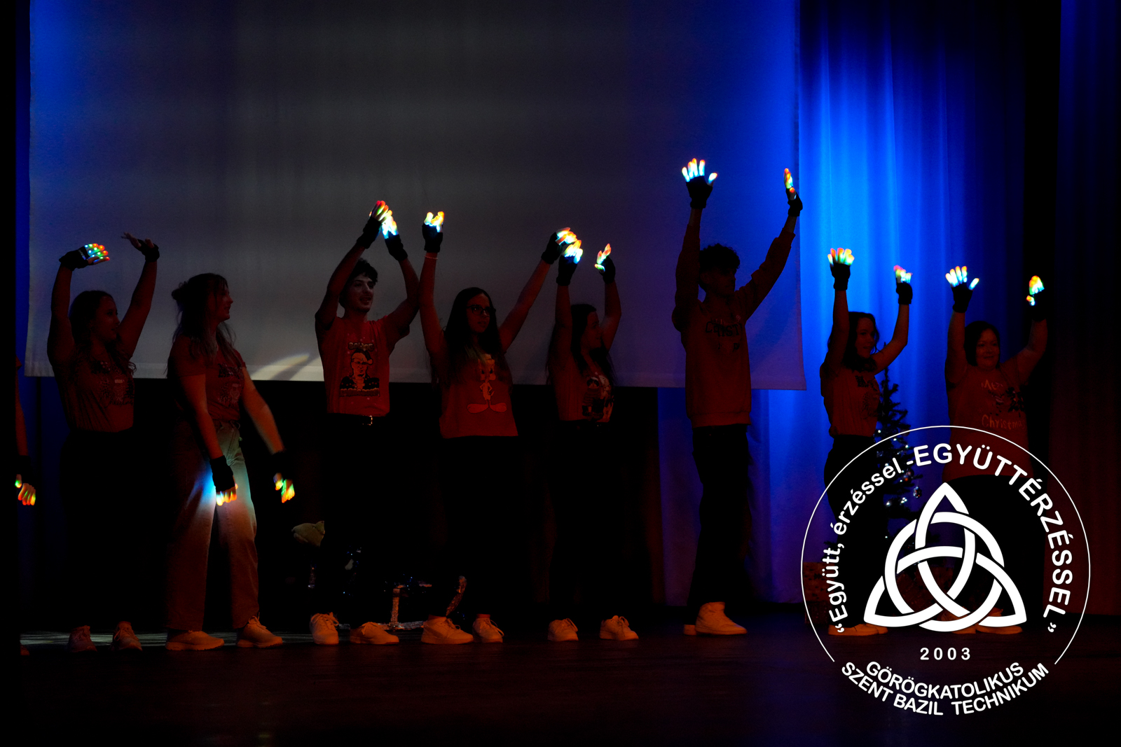 Az est extra pillanatai közé tartozott, amikor 10. osztályos tanulóink: Lakatos Míra Patrícia, Béres Nikoletta Adrienn és Szabó Henrietta színpadra léptek, és előadták Berkes Olivér: Világítótorony című dalát, majd a karácsony közeledtét a Fagyöngy dallal idézték meg.