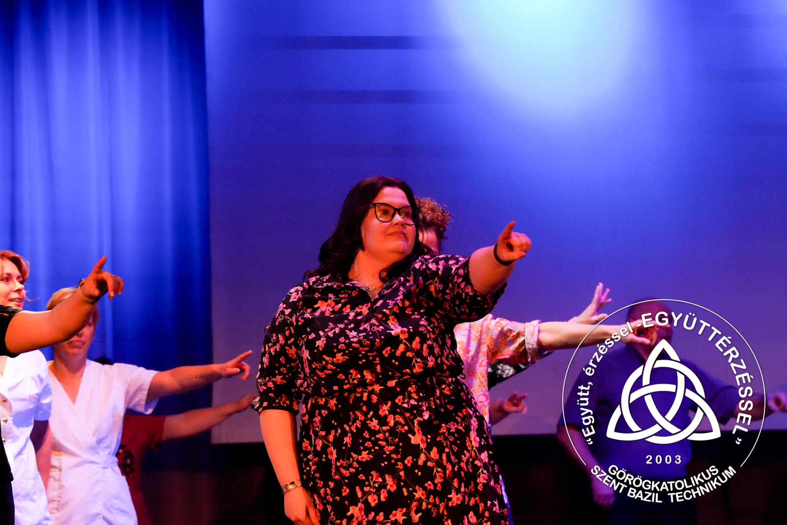 A fináléban pedig az oktatók is színpadra álltak, és bebizonyították: a tanáriban elfogyasztott kávék nemcsak túlélésre jók, hanem egy vidám, energikus táncra is bőven futja belőlük.
